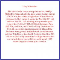 • NOTE: Gary Schneider - This Line is listed with Fostoria Line Nos. 501 to 516.