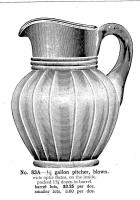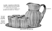 • NOTE: Sid Lethbridge 2022 - Here we have the No. 83 blown pitchers and lemonade sets. It was available plain or with an optic effect (designated A). The lemonade sets were made up of a pitcher, six tumblers and an optional metal tray. This pattern was introduced in 1904. The images are from the 1909 Imperial catalogue but the pitcher appears in the 1904 price list.