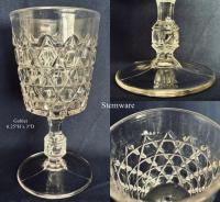 • NOTE: Yet another member of the hexagonal block pattern family! Found in the 1893 US Glass stemware catalogue but this goblet also appears in the 1889 catalogue so it was introduced in the 1880s.