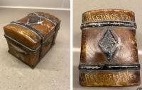 • NOTE: 2024 - Pictured in opal with gold on page 131 of Victorian Novelties in milk glass with gold. Same diamond shape on the top and front. Listed as 2H, 2.78L, 2W. Part of the Westmoreland Specialty Novelties and Souvenirs.
