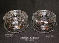 • NOTE: Sid Lethbridge 2024 - January 25, 1910 patent for these puff boxes issued to Andrew L Sanford and assigned to Heisey. Catalogue cut shows the No. 16 aka Betsy Ross hair receiver and puff box; No. 17 puff box and the No. 25 aka Martha Washington puff box. AKAs from Heisey Glass Vol. 2 1906-1916 by Clarence Vogel, edited by Neila and Tom Bredehoft, Monograph No. 136, MAGWV, p60. There may be other AKA's.