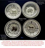 • NOTE: A butter dish insert. Similar, yet different to Fostoria No. 240 Margueritte. Gary Schneider feels these were made as custom designs for the silver/dairy industry.